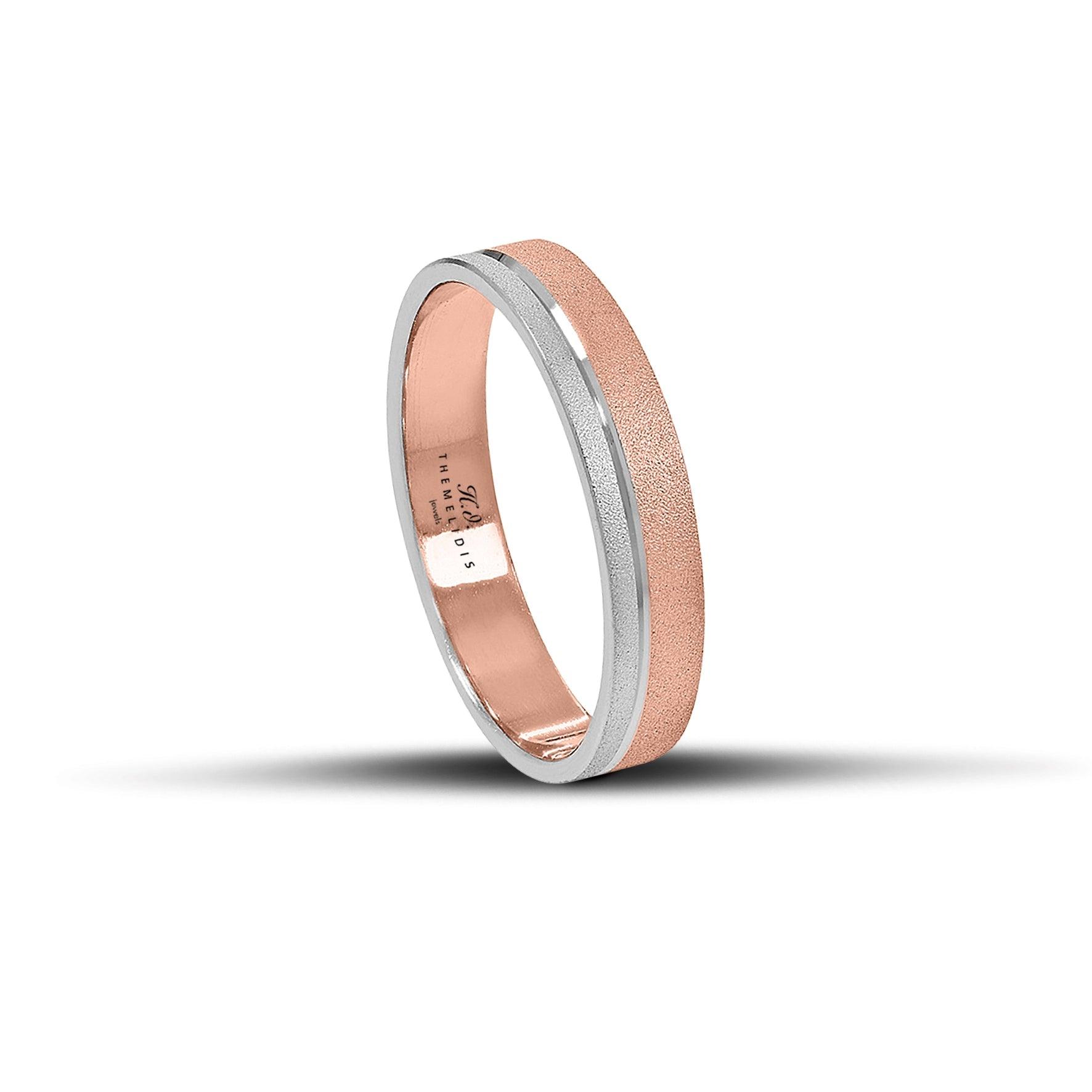 Δίχρωμες Βέρες Γάμου Ροζ Χρυσές και Λευκόχρυσες 4.5 mm Ματ με Λεπτή Λουστρέ Γραμμή WR303