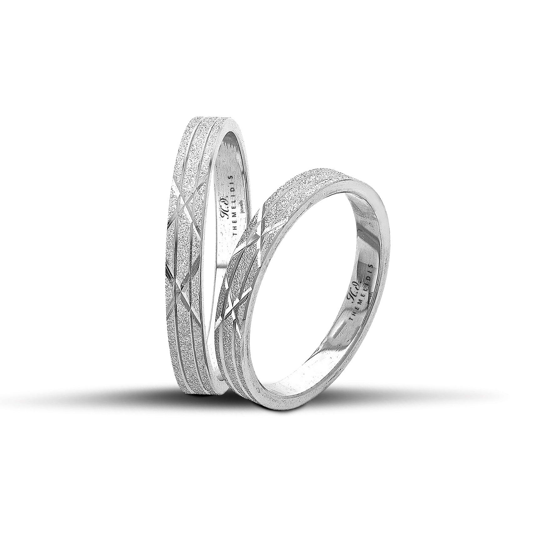 Βέρες Γάμου Λευκόχρυσες 3mm Λουστρέ με Γραμμές Αμμοβολής WR049