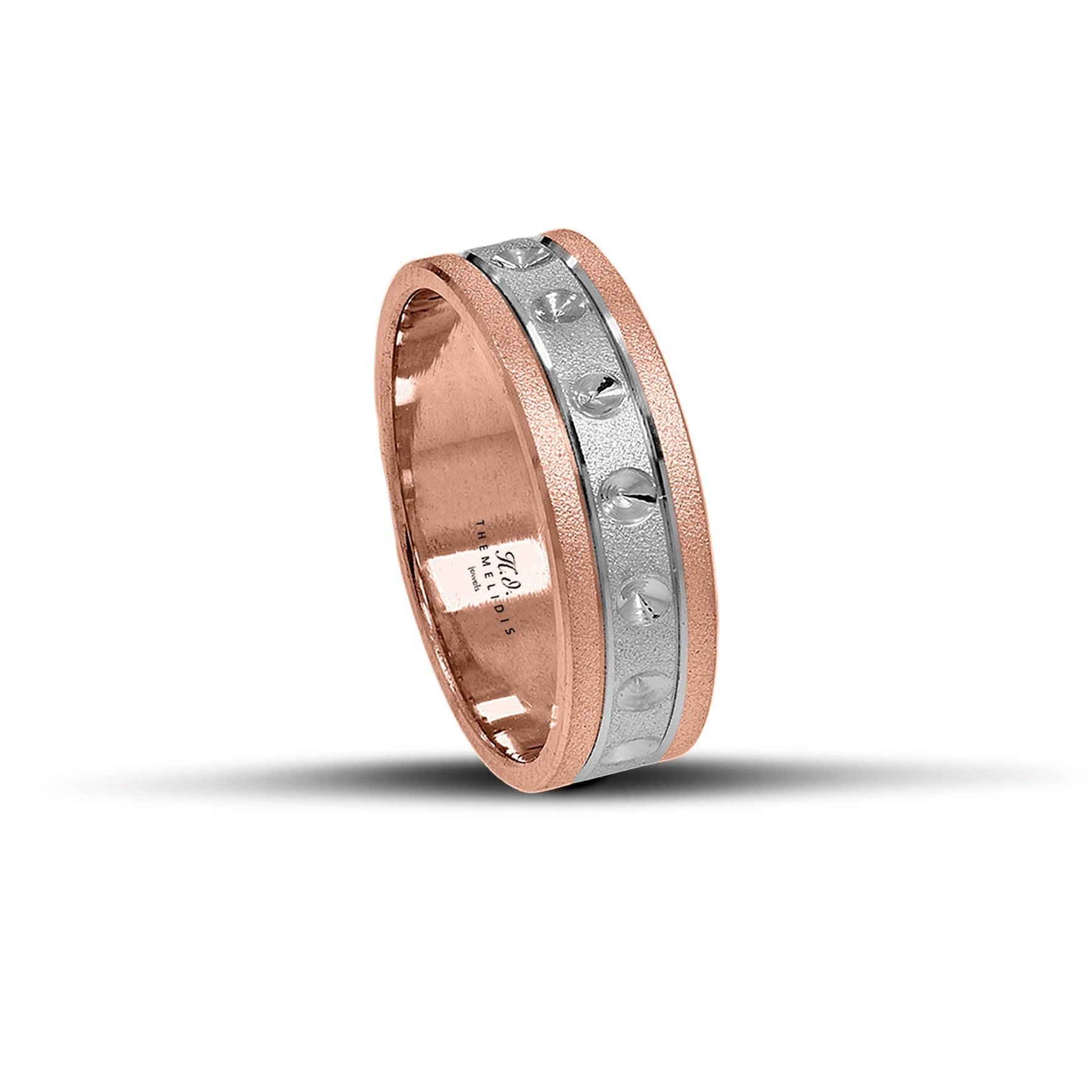Πρωτότυπες Βέρες Γάμου Ροζ Χρυσές & Λευκόχρυσες 6 mm Ματ με Στρογγυλά Σχέδια WR282