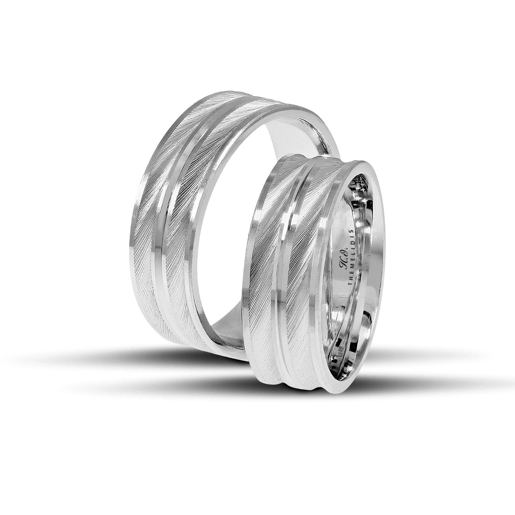 Μοντέρνες Βέρες Γάμου Λευκόχρυσες 7 mm Σαγρέ & Λουστρέ Γραμμές WR233