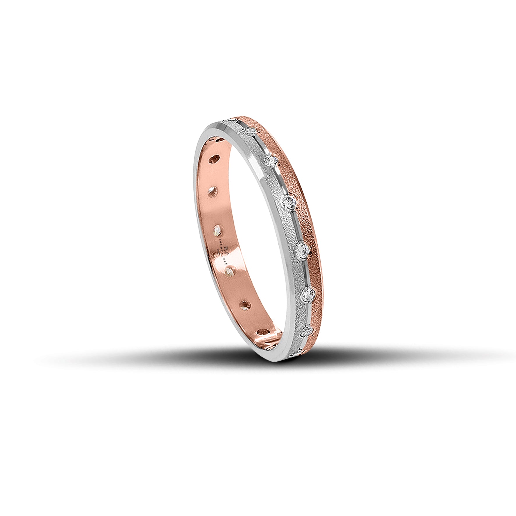 Μοντέρνες Βέρες Γάμου Ροζ Χρυσές και Λευκόχρυσες Ματ με Λουστρέ Γραμμή και Ζιργκόν 3mm WR322