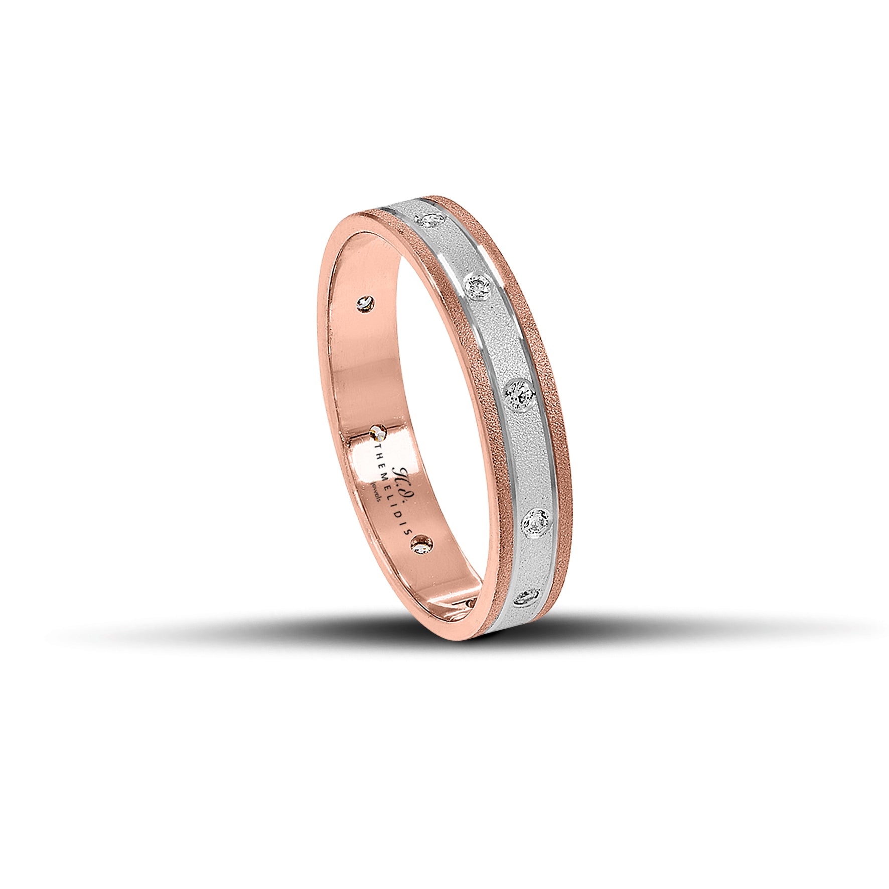 Βέρες Γάμου Ροζ Χρυσές και Λευκόχρυσες Ματ με Λουστρέ Γραμμές και Ζιργκόν 4.5mm WR300