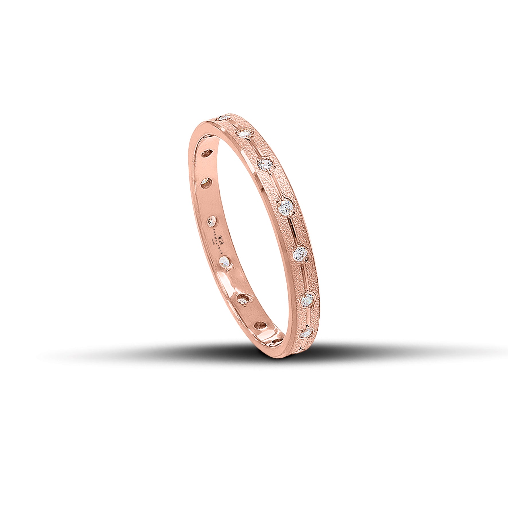 Μοντέρνες ροζ χρυσές βέρες γάμου, που αποπνέουν διακριτική πολυτέλεια και ρομαντική κομψότητα. Το ματ φινίρισμα αναδεικνύει τη θερμή απόχρωση του ροζ χρυσού, ενώ η λεπτή λουστρέ γραμμή στο κέντρο δημιουργεί μια φωτεινή αντίθεση που ενισχύει τη χάρη του σχεδίου. Τα ζιργκόν χαρίζουν λάμψη δίνοντας έναν διακριτικό αλλά εντυπωσιακό τόνο. Με πλάτος 2.5 mm, αποτελούν μια εκλεπτυσμένη επιλογή για ζευγάρια που αγαπούν τη λεπτότητα και τη διακριτική πολυτέλεια.