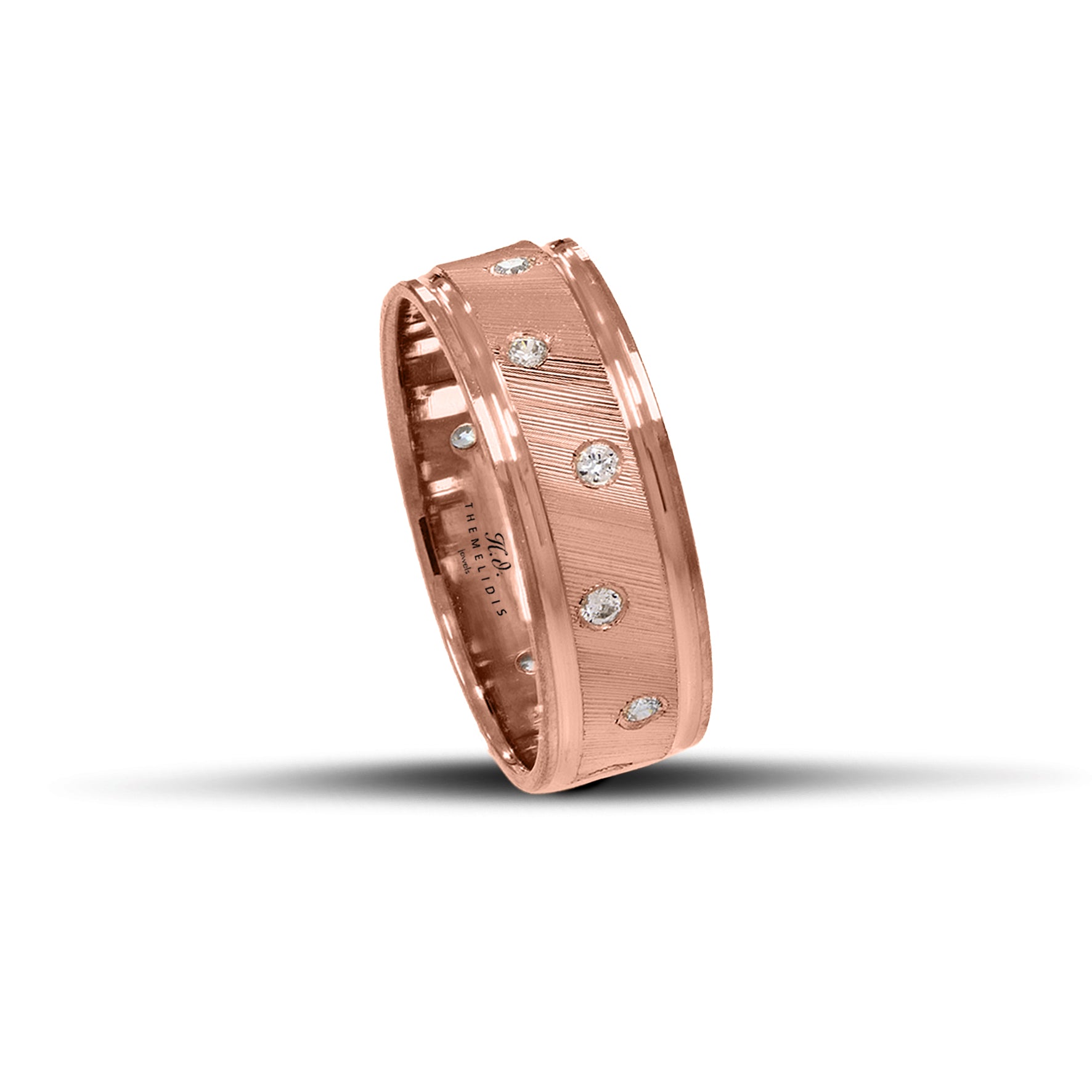 Μοντέρνες Ροζ Χρυσές Βέρες Γάμου 6mm Σαγρέ και Λουστρέ με Ζιργκόν WR25 – Κοσμηματοπωλείο Θεμελίδης