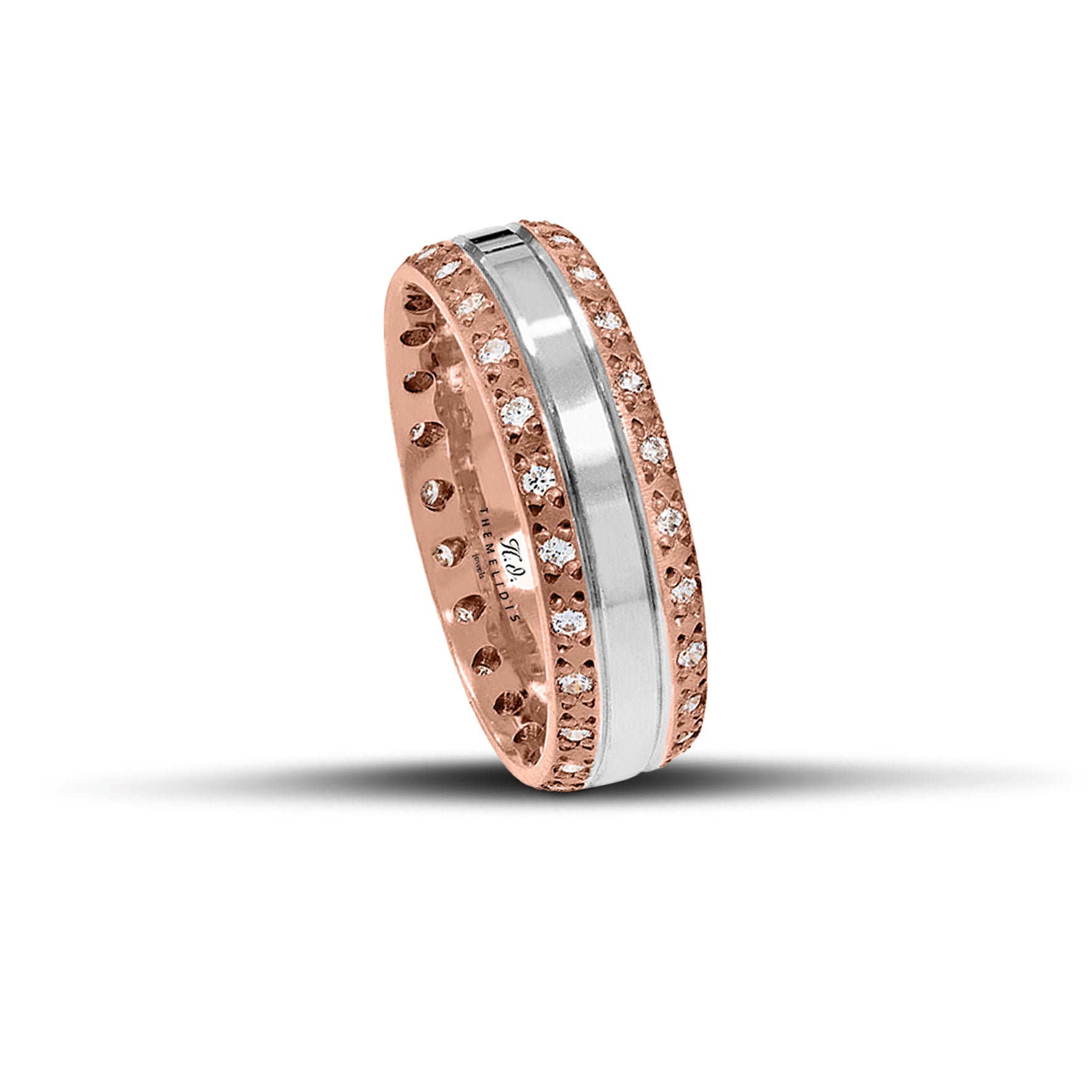 Πρωτότυπες Βέρες Γάμου Ροζ Χρυσές με Ζιργκόν και Λευκόχρυση Λουστρέ Γραμμή WR242