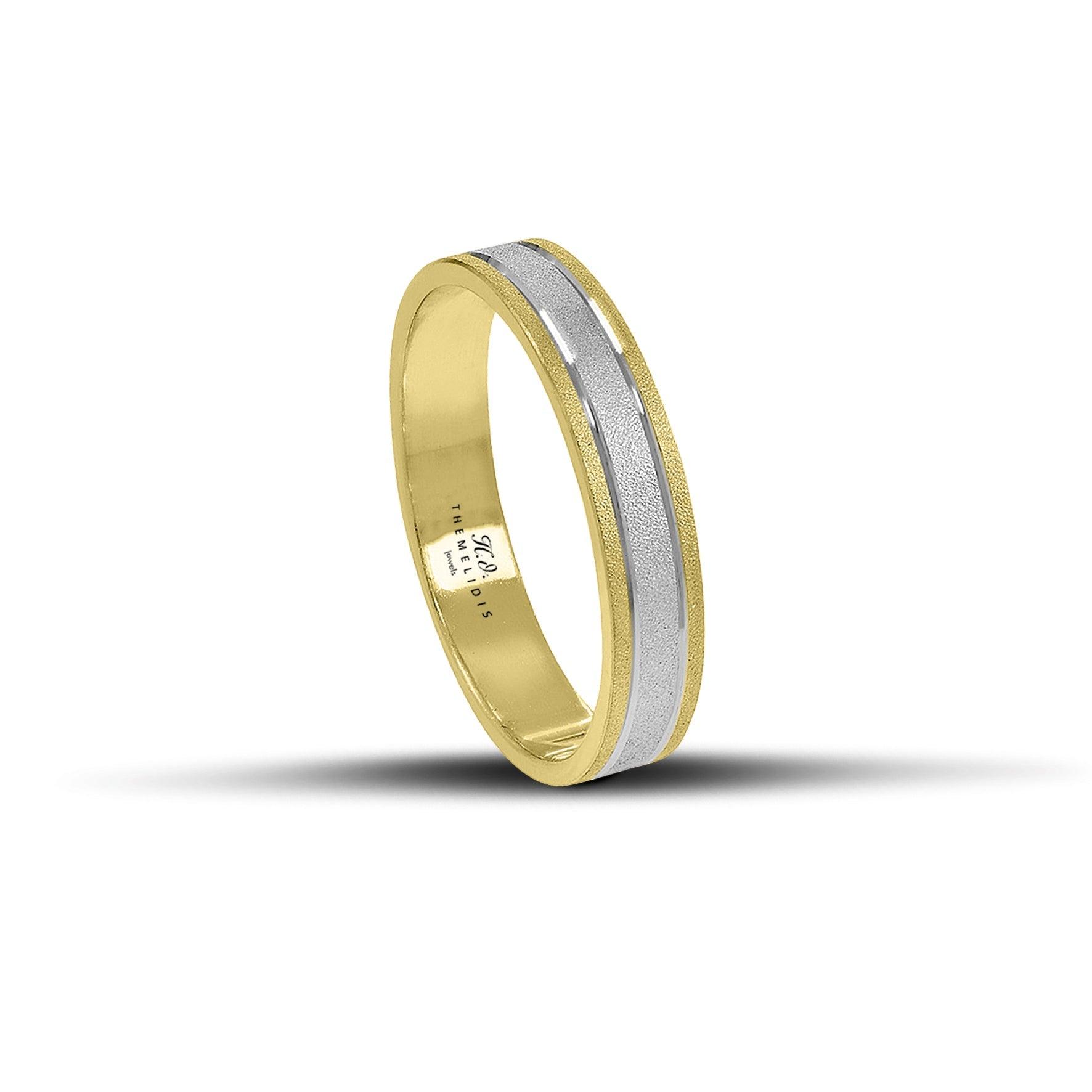 Μοντέρνες Βέρες Γάμου Χρυσές & Λευκόχρυσες 4.5 mm Ματ με Δύο Λουστρέ Γραμμές WR297