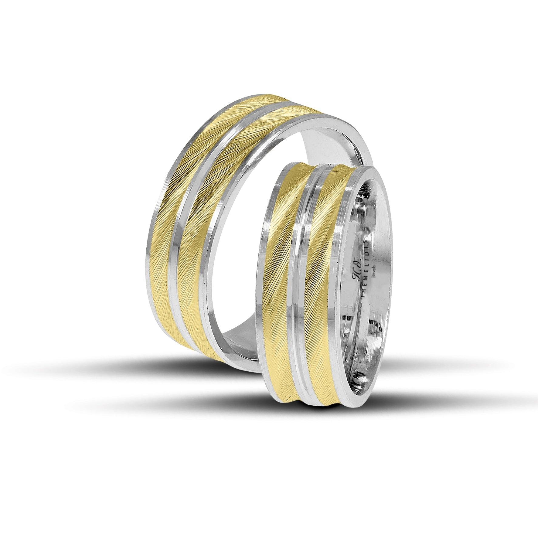 Οι δίχρωμες βέρες γάμου συνδυάζουν αρμονικά τον λευκόχρυσο και τον χρυσό σε ένα εντυπωσιακό σχέδιο με σαγρέ και λουστρέ φινίρισμα. Η λάμψη του λευκόχρυσου δένει απόλυτα με τη ζεστασιά του χρυσού, δημιουργώντας ένα αποτέλεσμα που αποπνέει πολυτέλεια και ισορροπία. Με πλάτος 7 mm, οι βέρες αυτές ξεχωρίζουν για τον δυναμικό τους χαρακτήρα και αποτελούν την ιδανική επιλογή για ζευγάρια που αναζητούν κάτι ξεχωριστό.