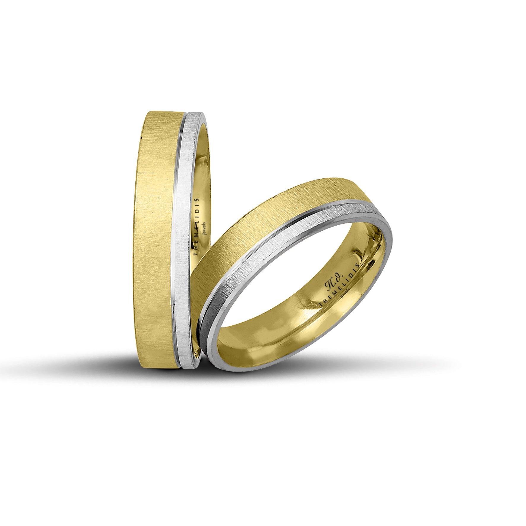 Δίχρωμες Βέρες Γάμου Χρυσές & Λευκόχρυσες 5 mm Σαγρέ με Λουστρέ Γραμμή WR214