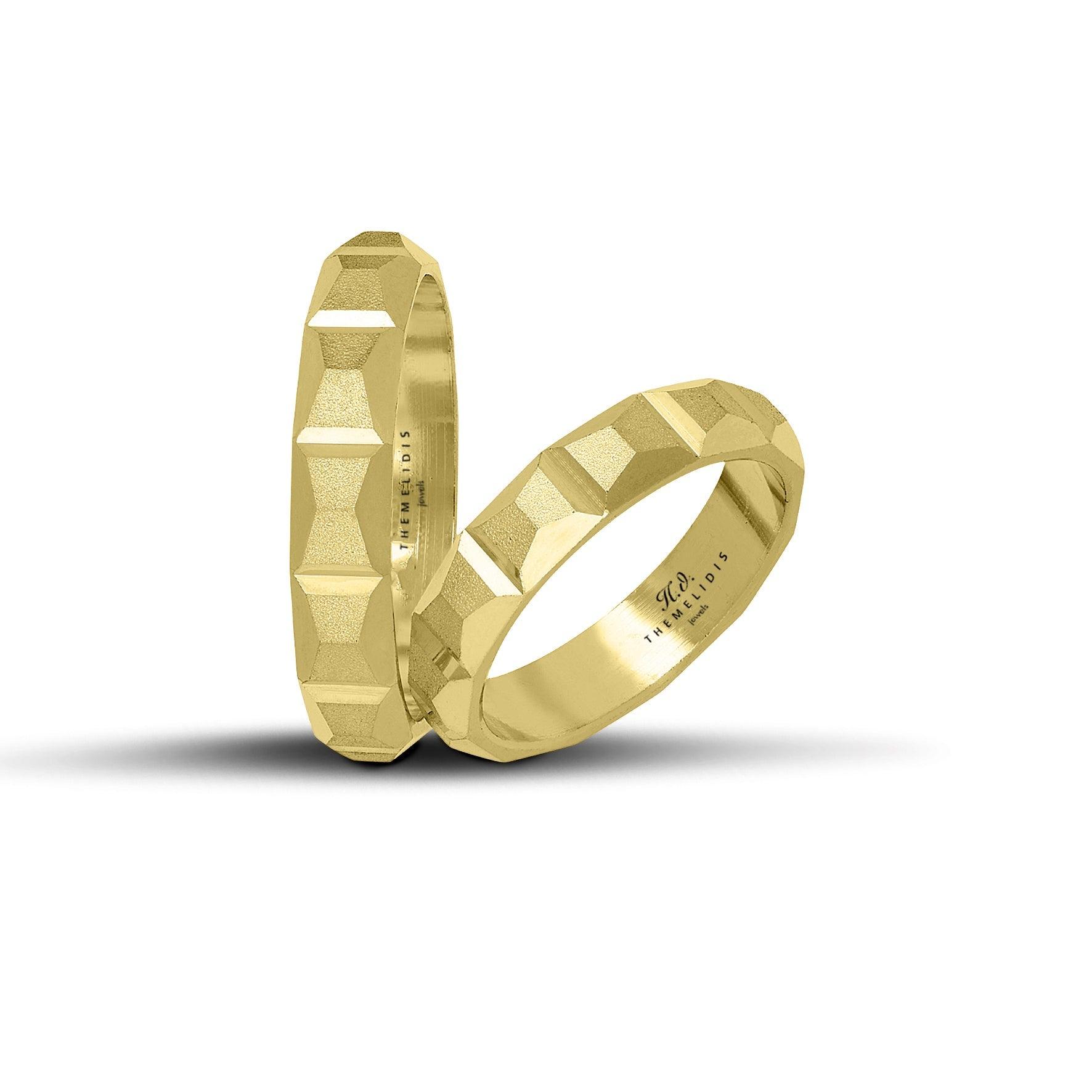 Πρωτότυπες Βέρες Γάμου Χρυσές 4.5 mm Λουστρέ με Ματ Γωνίες WR213