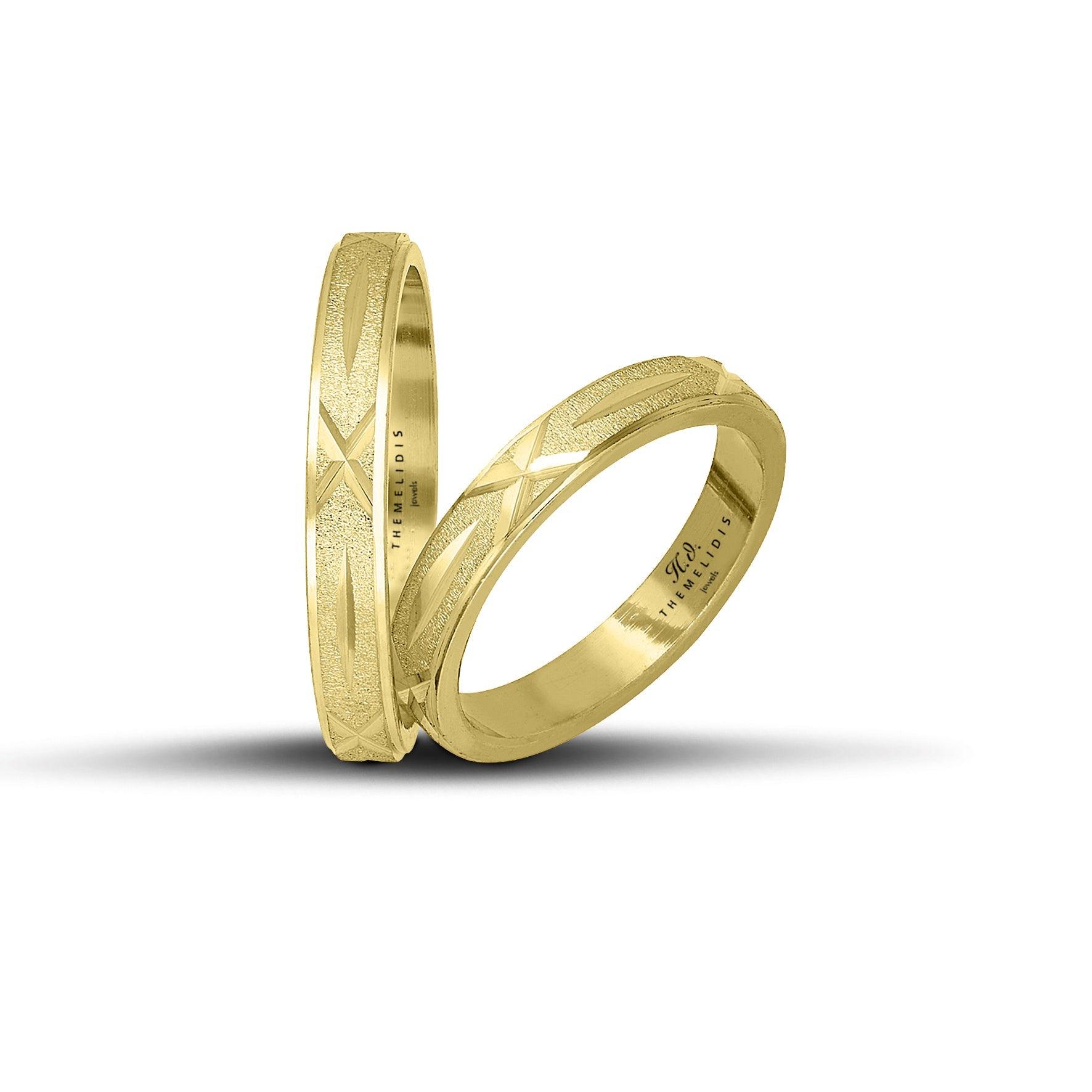 Πρωτότυπες Βέρες Γάμου Χρυσές 3.5 mm Ματ με Λουστρέ Γεωμετρικά Σχέδια WR207