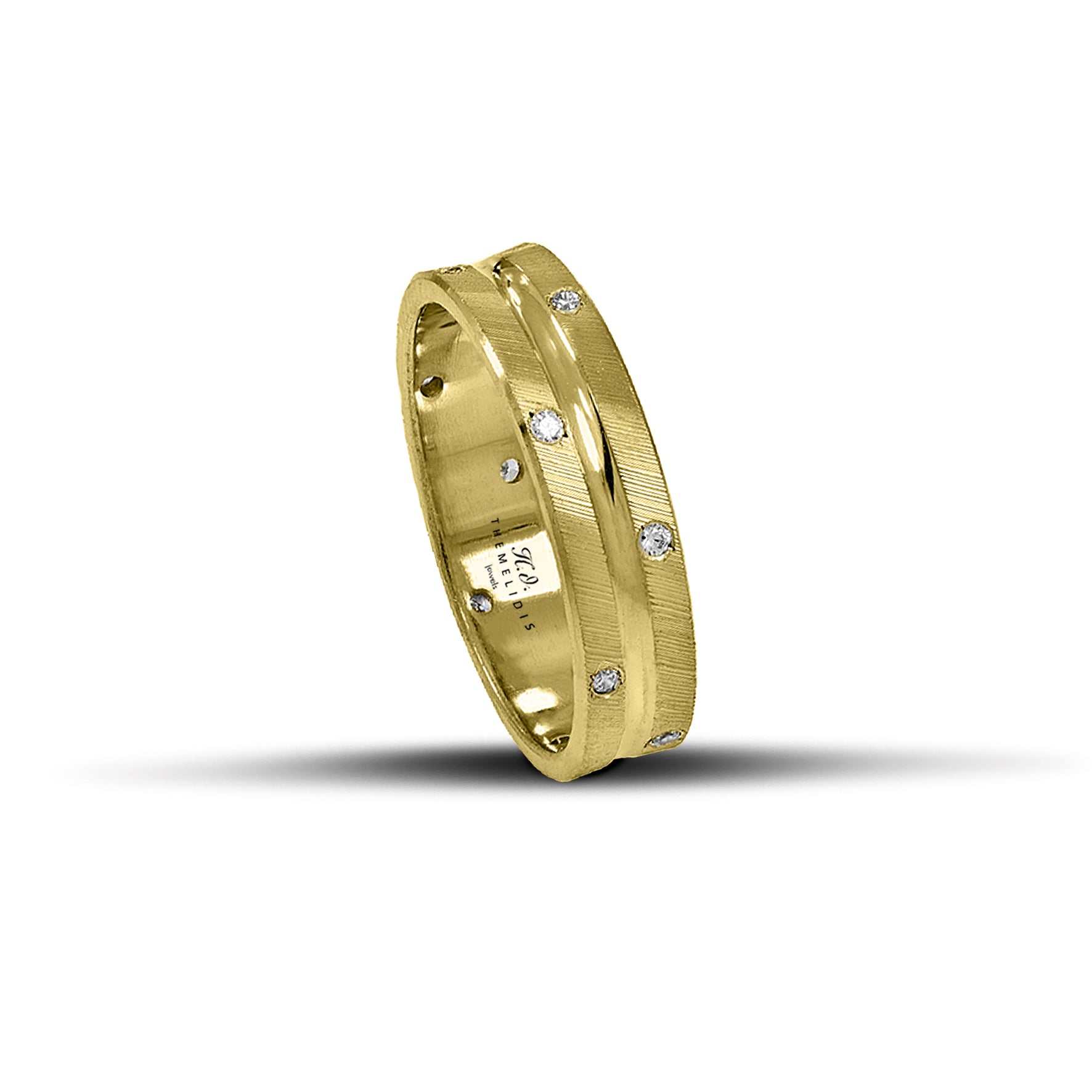 Μοντέρνες Χρυσές Βέρες Γάμου που συνδυάζουν τη διαχρονικότητα του χρυσού με μοντέρνο σχεδιασμό και εντυπωσιακή λάμψη. Το λουστρέ φινίρισμα και η σαγρέ υφή δημιουργούν ένα εκλεπτυσμένο παιχνίδι φωτός, ενώ τα διακριτικά ζιργκόν χαρίζουν πολυτελή λεπτομέρεια.